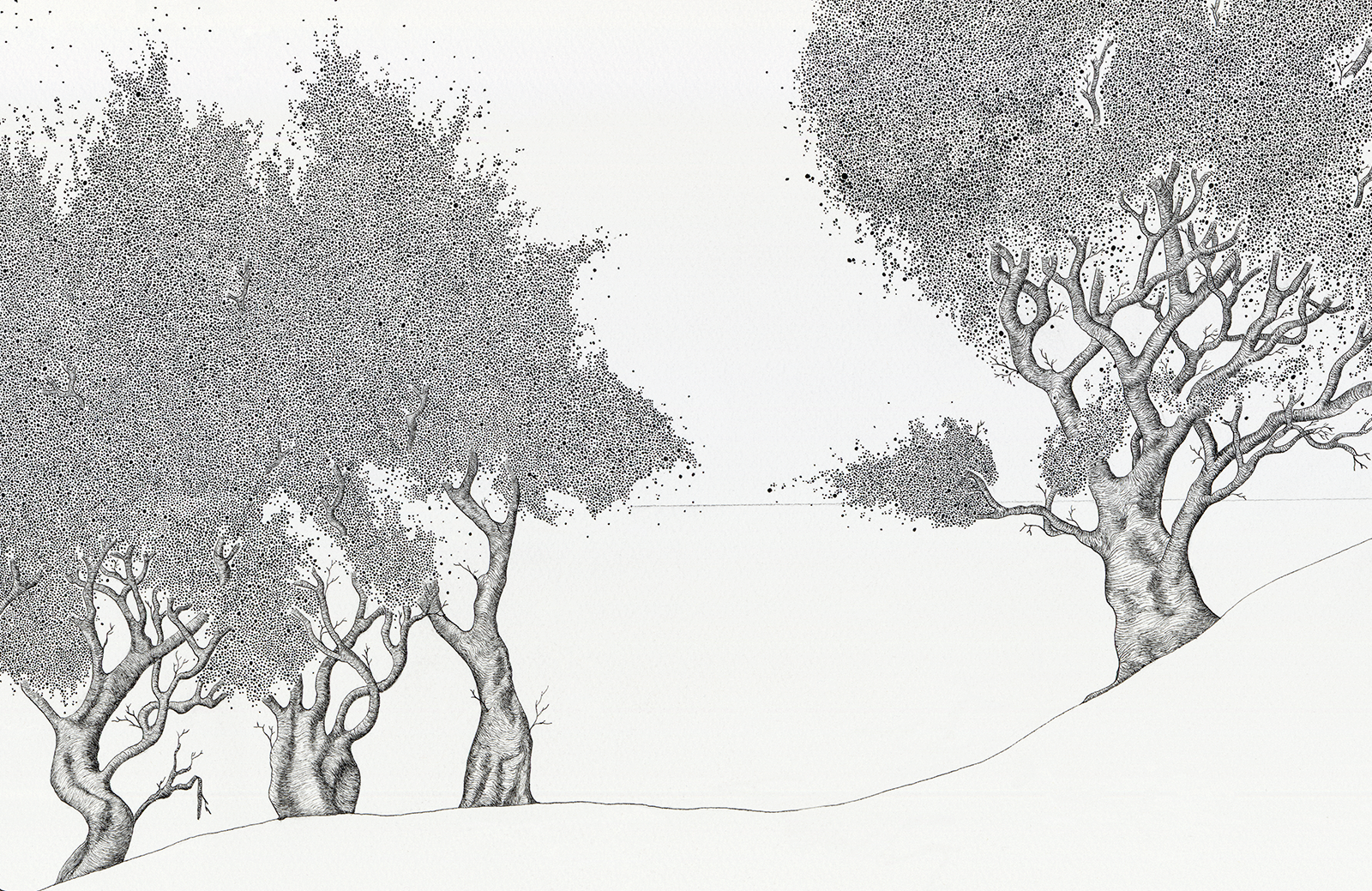 Encre de Chine, dessin réalisé à la plume,